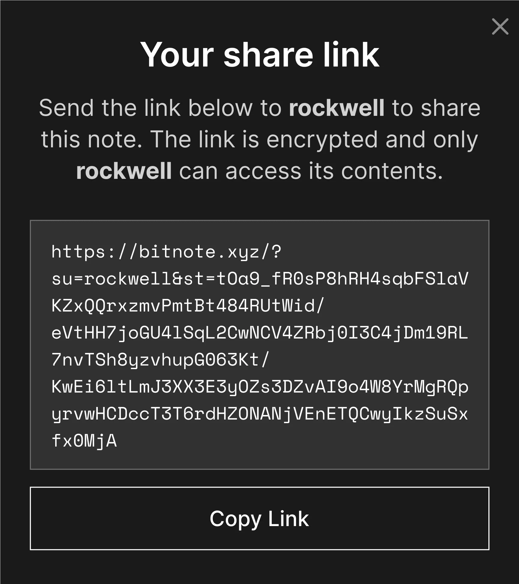 Notes can be easily shared securely with other BitNote users. You can set "succession rules" for notes that allow users to receive its contents under certain conditions.